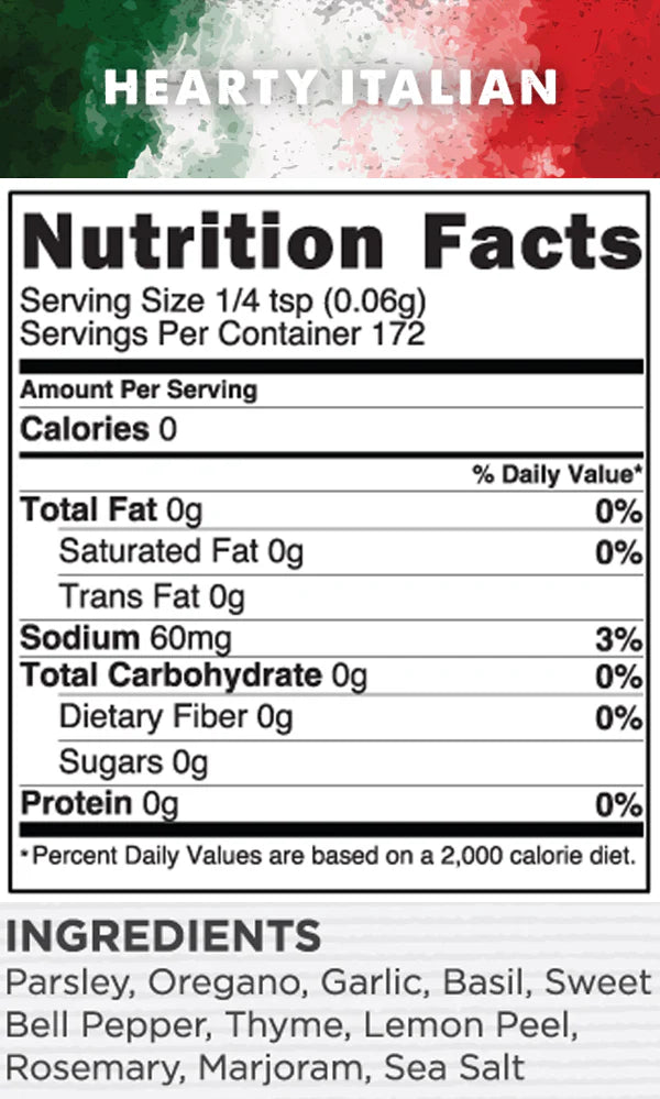 The bold, aromatic flavor of All-Natural Hearty Italian seasoning is perfect for seasoning meats, vegetables, and pasta dishes. Whether you're creating a classic spaghetti and meatballs recipe, seasoning roasted vegetables, or adding flavor to grilled chicken, this blend will elevate your cooking to new heights.